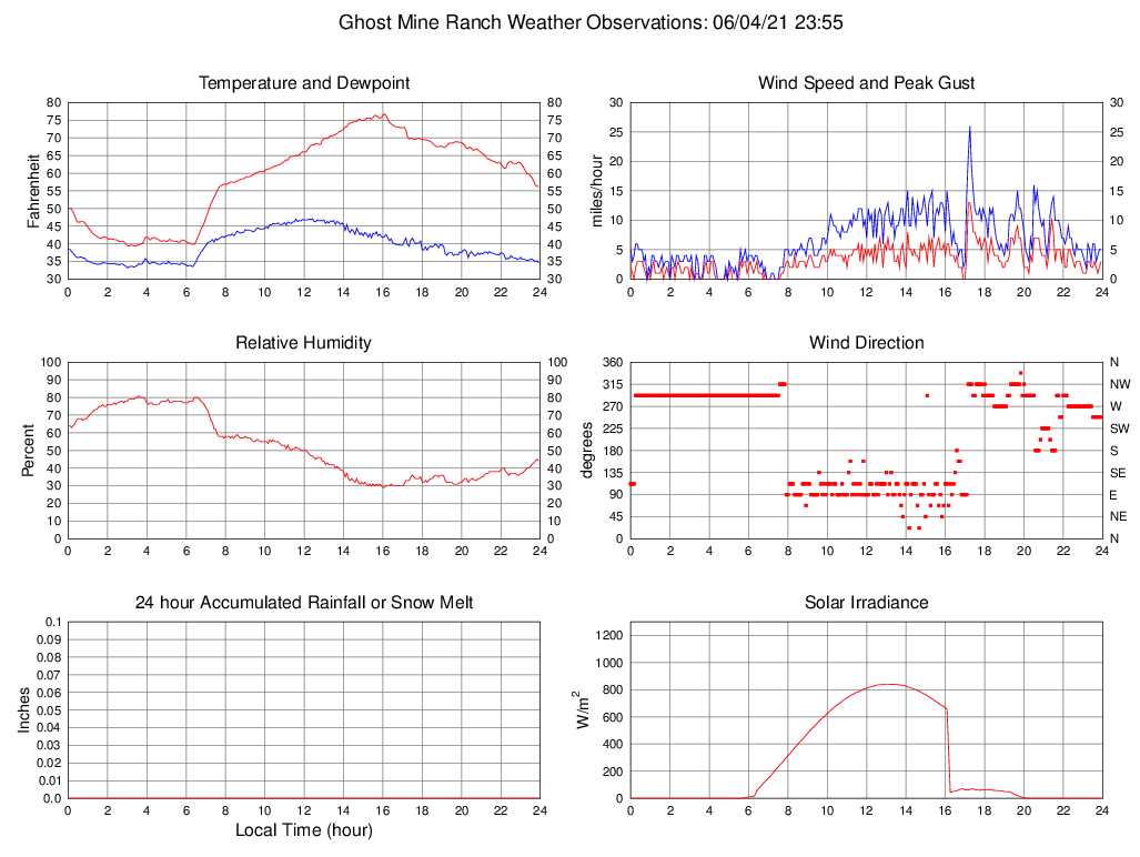 Temperature (F) 56.2 39.3 @ 03:25 76.8 @ 16:05 59.0