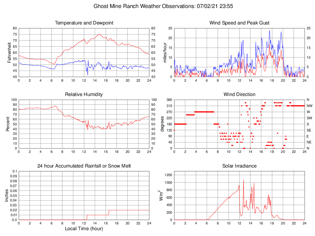 Temperature (F) 58.6 50.4 @ 06:25 75.1 @ 14:50 62.9