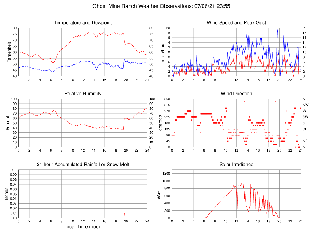 Temperature (F) 57.4 50.8 @ 06:25 76.9 @ 13:15 65.8