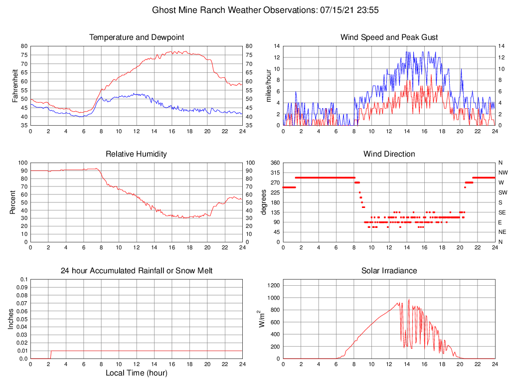 Temperature (F) 58.4 42.2 @ 05:35 77.1 @ 16:45 60.7