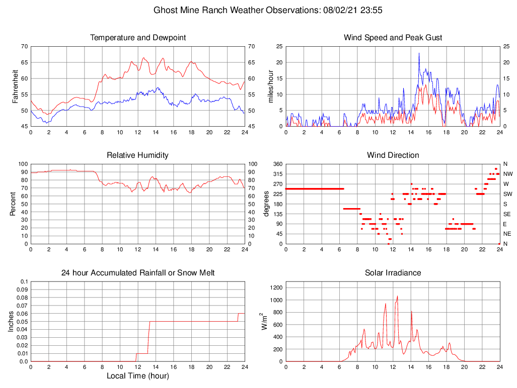 Dewpoint (F) 49.2 46.0 @ 01:45 57.2 @ 14:15 52.1