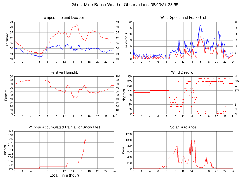 Temperature (F) 55.1 44.5 @ 06:00 72.9 @ 14:55 58.0