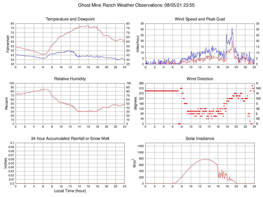 Temperature (F) 58.7 45.7 @ 06:10 77.7 @ 15:40 62.7
