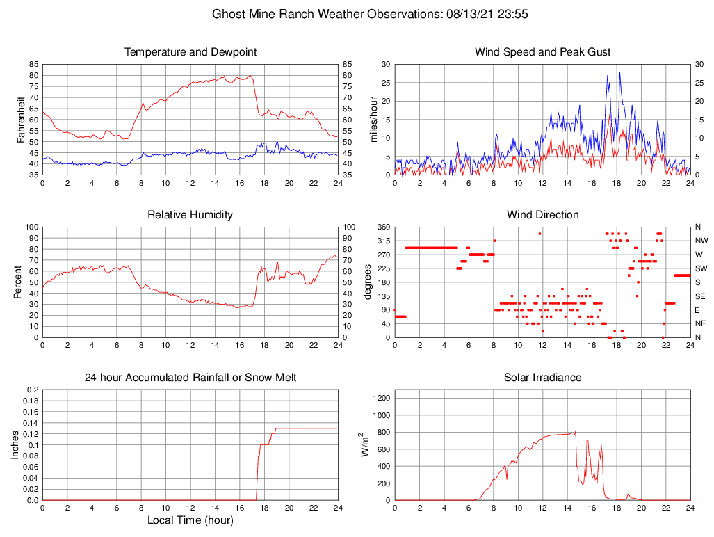 Temperature (F) 52.3 51.2 @ 04:40 80.1 @ 16:50 63.9