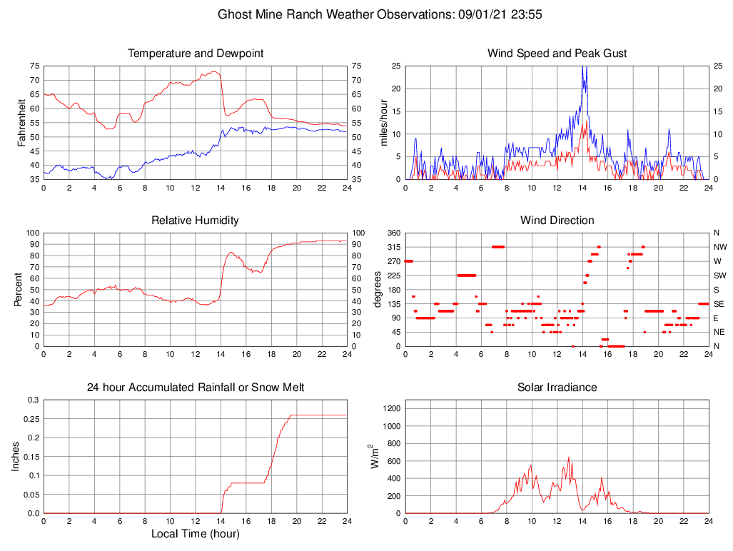 Wind Speed (mph) 0.0 0.0 @ 00:00 13.0 @ 14:20 2.3