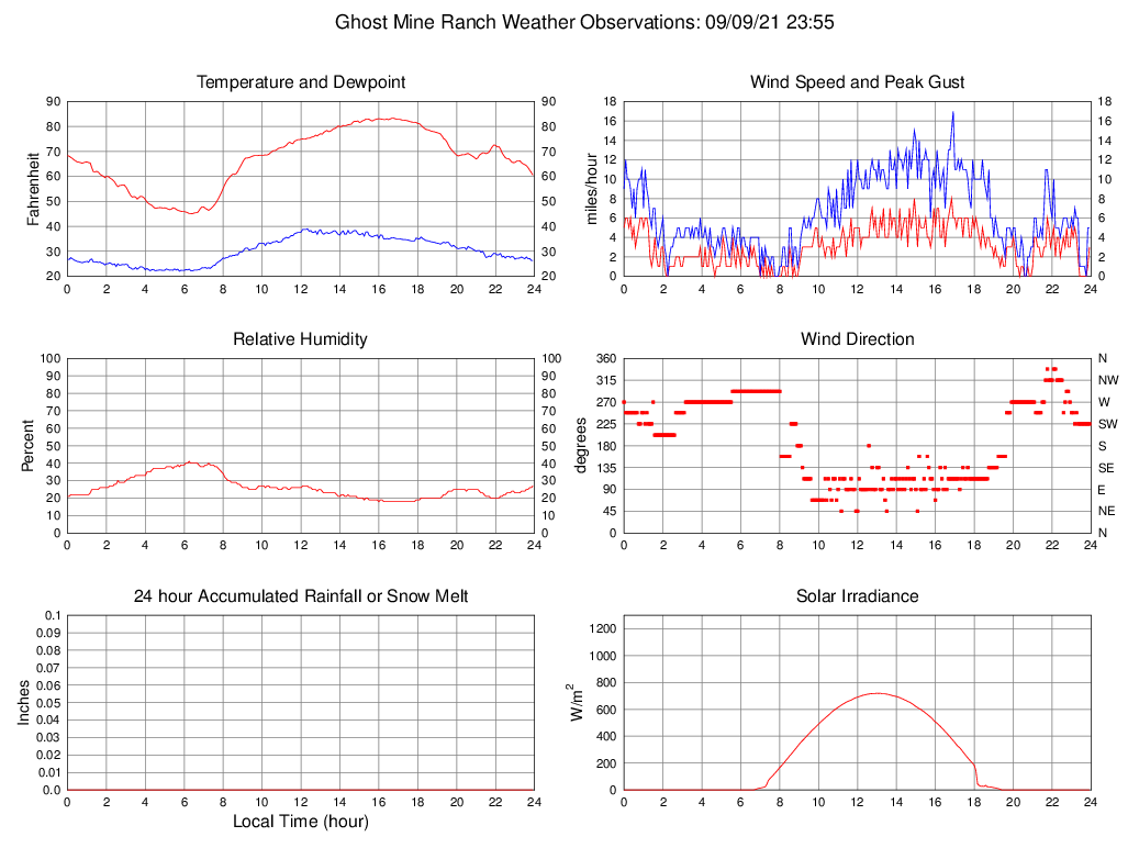 Temperature (F) 60.5 45.0 @ 06:25 83.3 @ 16:40 66.9