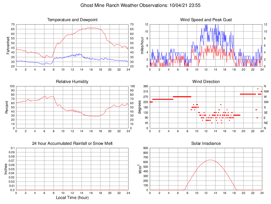 Temperature (F) 45.3 34.2 @ 06:10 66.5 @ 15:15 50.7