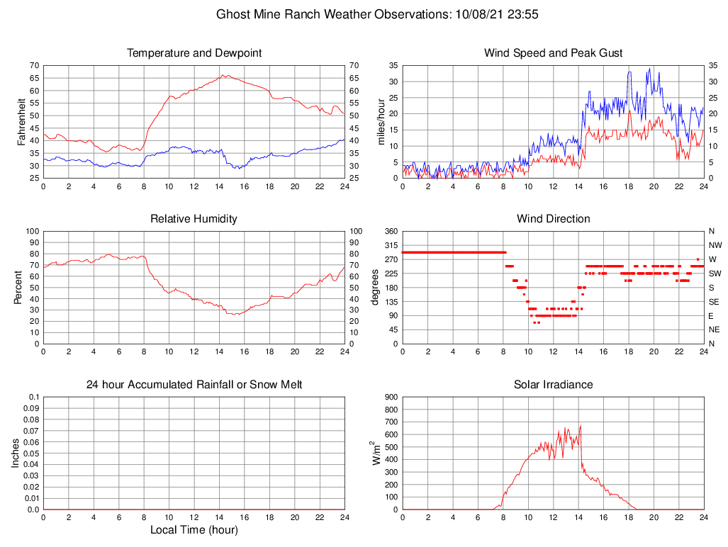 Temperature (F) 50.8 35.5 @ 05:00 66.2 @ 14:15 51.2