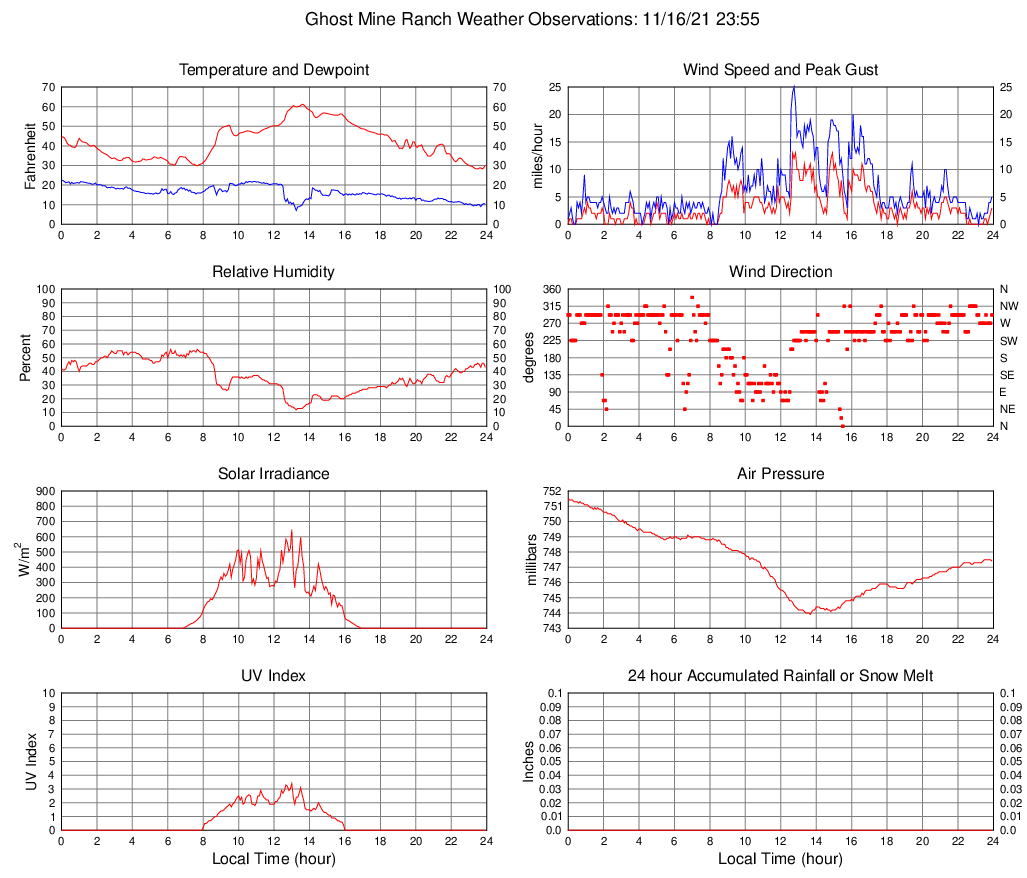 Temperature (F) 30.1 28.3 @ 23:25 61.2 @ 13:35 42.1