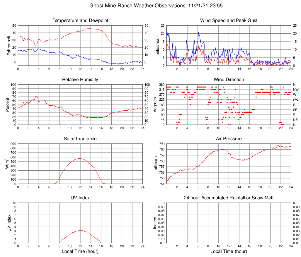 Dewpoint (F) -1.0 -3.1 @ 19:20 18.6 @ 03:50 7.0