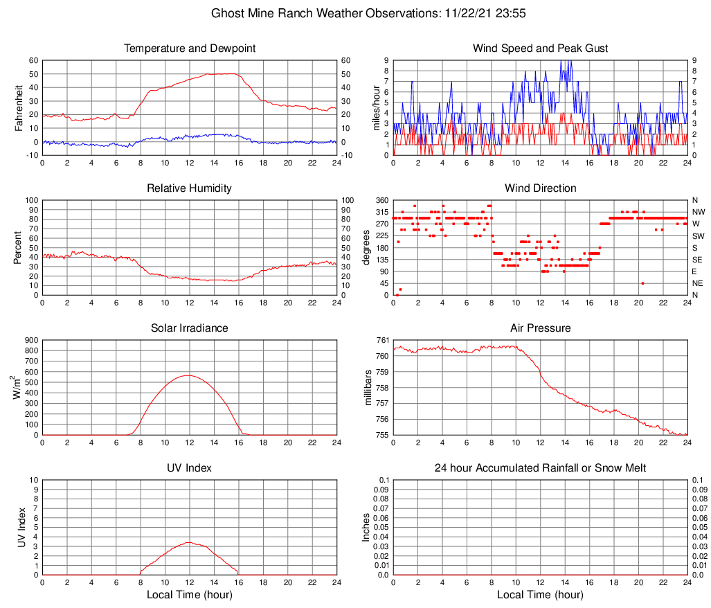 Temperature (F) 24.5 15.3 @ 03:05 50.2 @ 14:50 30.6