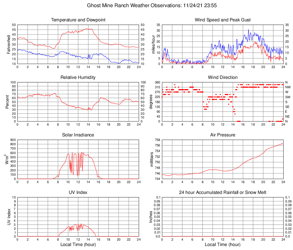 Temperature (F) 27.1 25.8 @ 07:05 46.0 @ 13:30 34.1