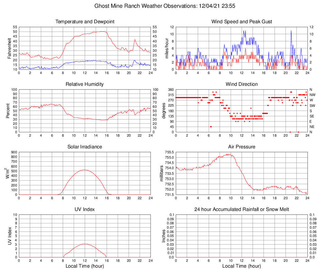 Temperature (F) 28.0 20.8 @ 05:45 50.3 @ 15:00 34.3