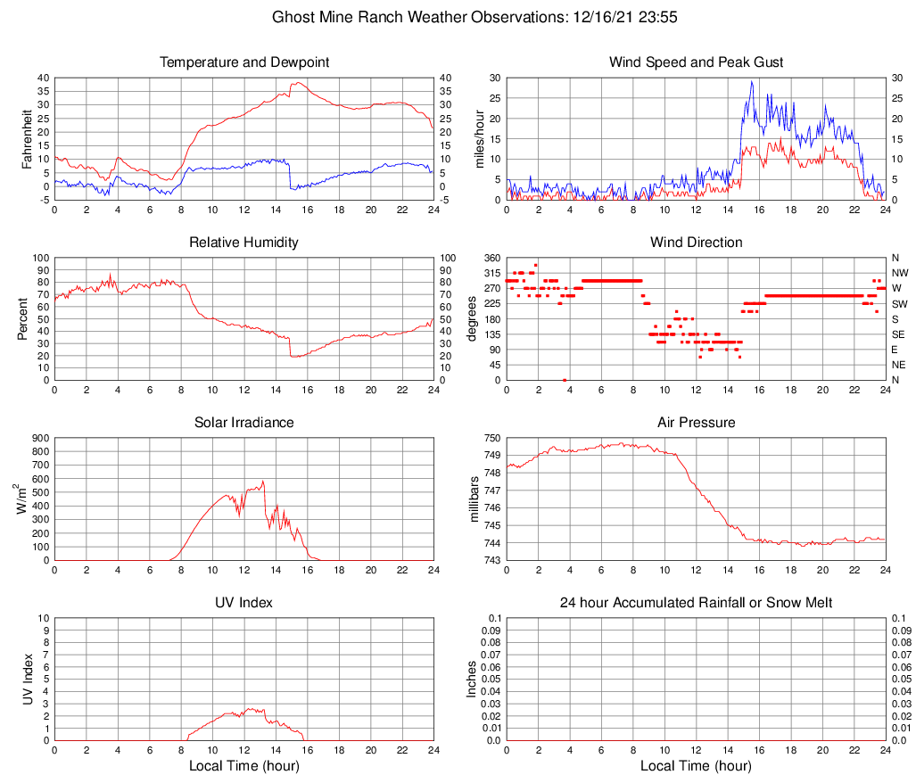 Temperature (F) 21.4 2.3 @ 03:10 38.2 @ 15:25 20.9