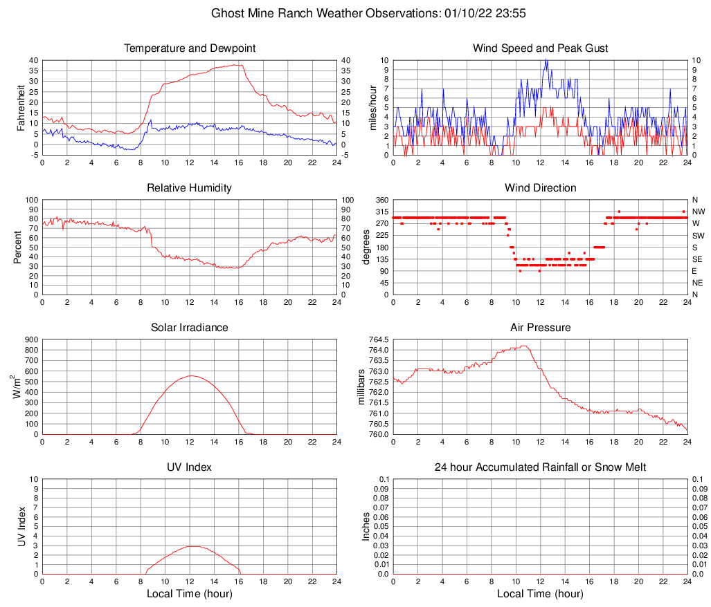 Temperature (F) 10.8 5.2 @ 06:55 37.8 @ 15:35 19.2