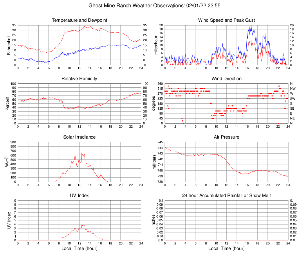 Temperature (F) 21.0 7.4 @ 05:40 33.7 @ 13:00 21.8