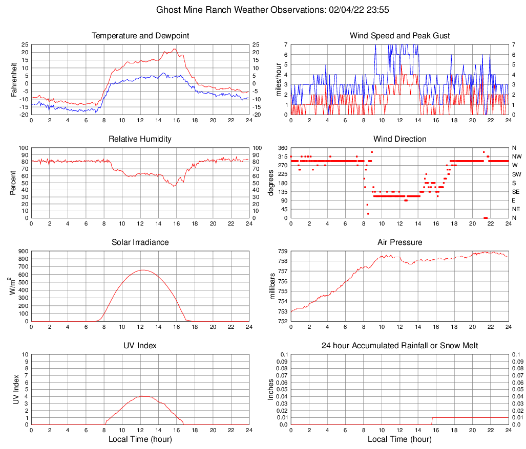 Dewpoint (F) -9.1 -18.7 @ 07:05 6.8 @ 14:30 -6.1