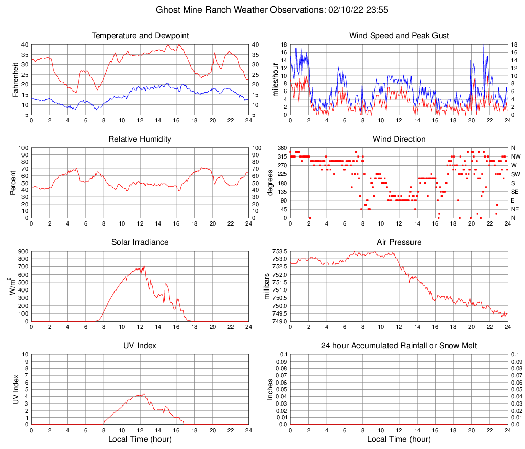 Temperature (F) 22.7 15.9 @ 04:55 39.8 @ 16:15 30.1