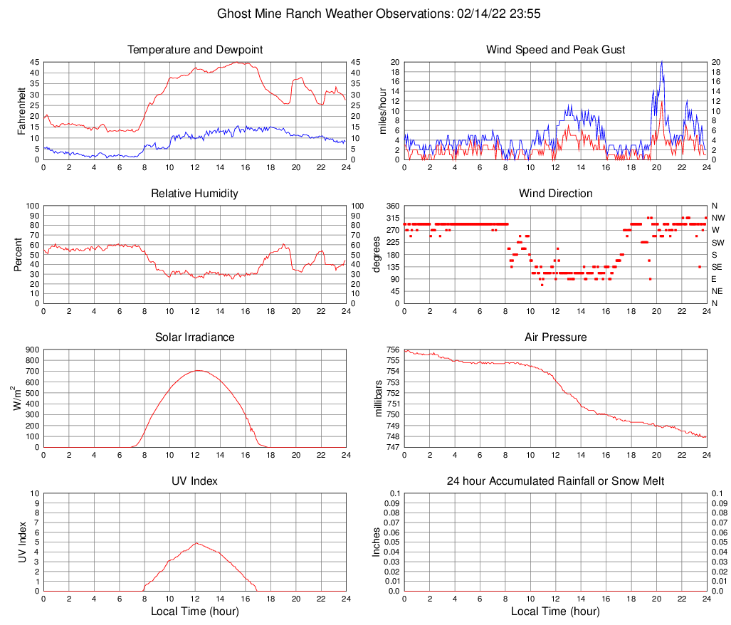 Temperature (F) 27.5 12.7 @ 05:05 45.0 @ 15:20 28.6