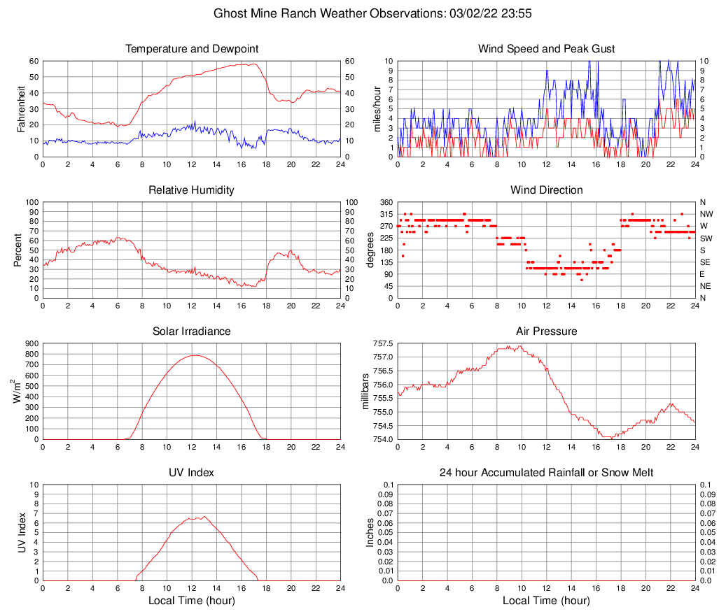 Temperature (F) 40.6 18.9 @ 06:00 58.0 @ 16:20 39.0