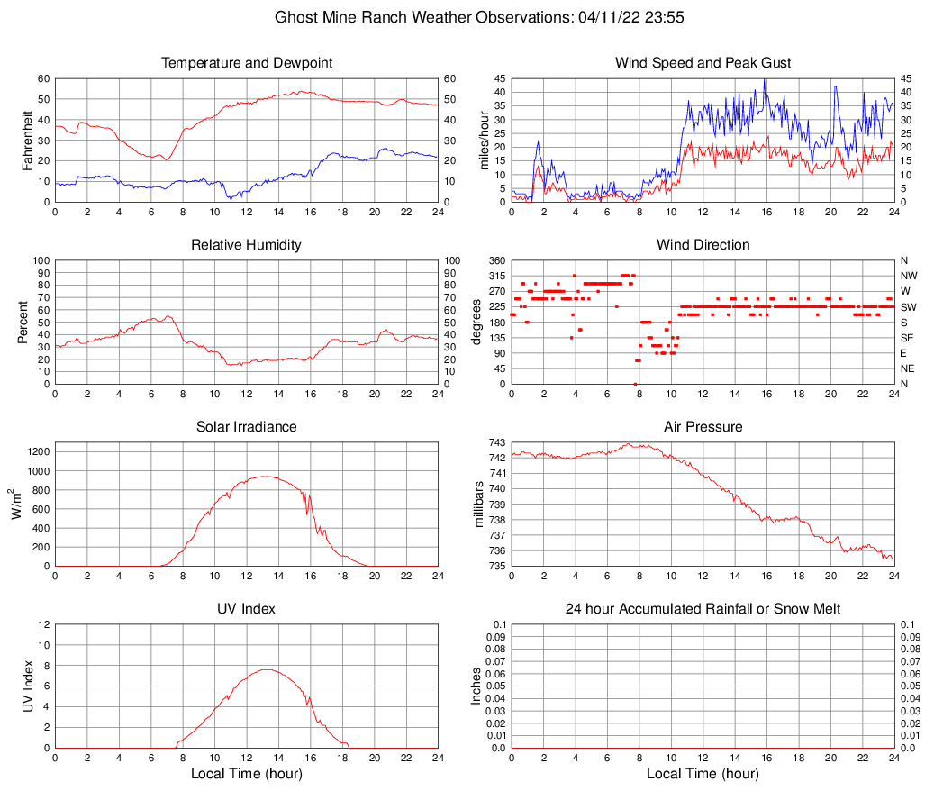 Temperature (F) 47.1 20.5 @ 06:55 53.8 @ 15:25 42.0