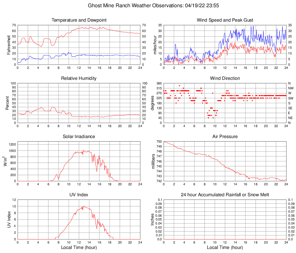 Temperature (F) 54.8 31.9 @ 04:35 66.4 @ 14:15 53.5