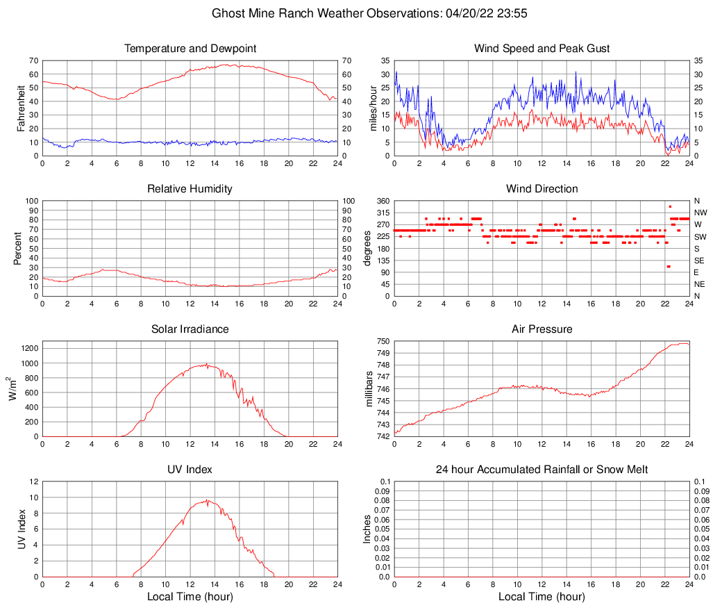 Temperature (F) 42.2 40.9 @ 23:20 67.0 @ 15:00 55.0