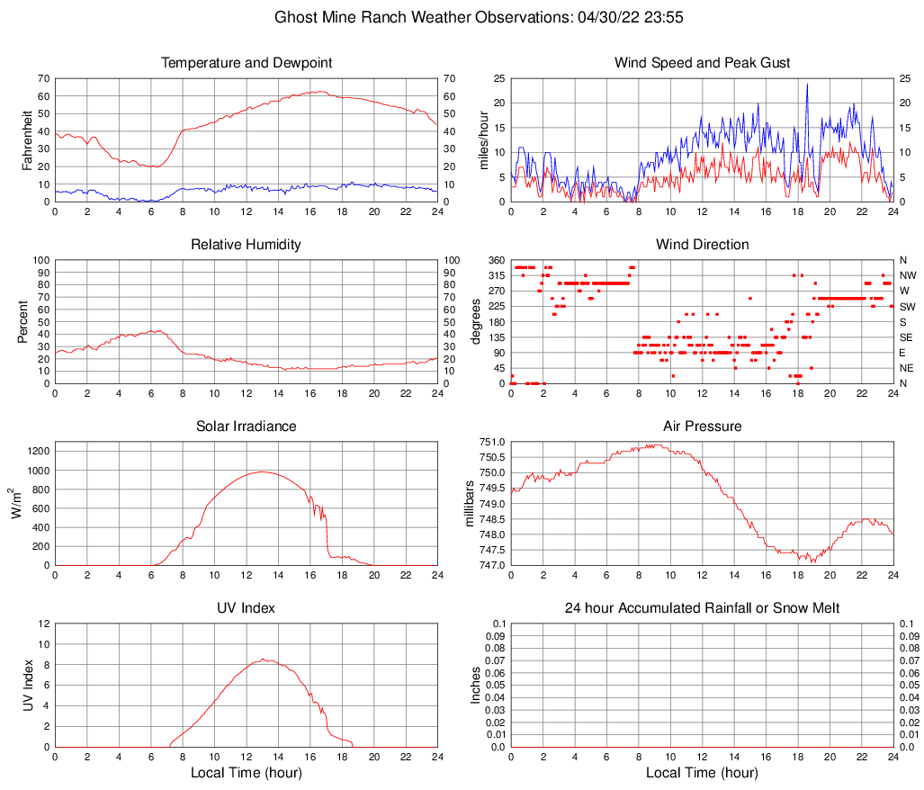 Temperature (F) 43.8 19.7 @ 06:20 62.6 @ 16:35 45.5