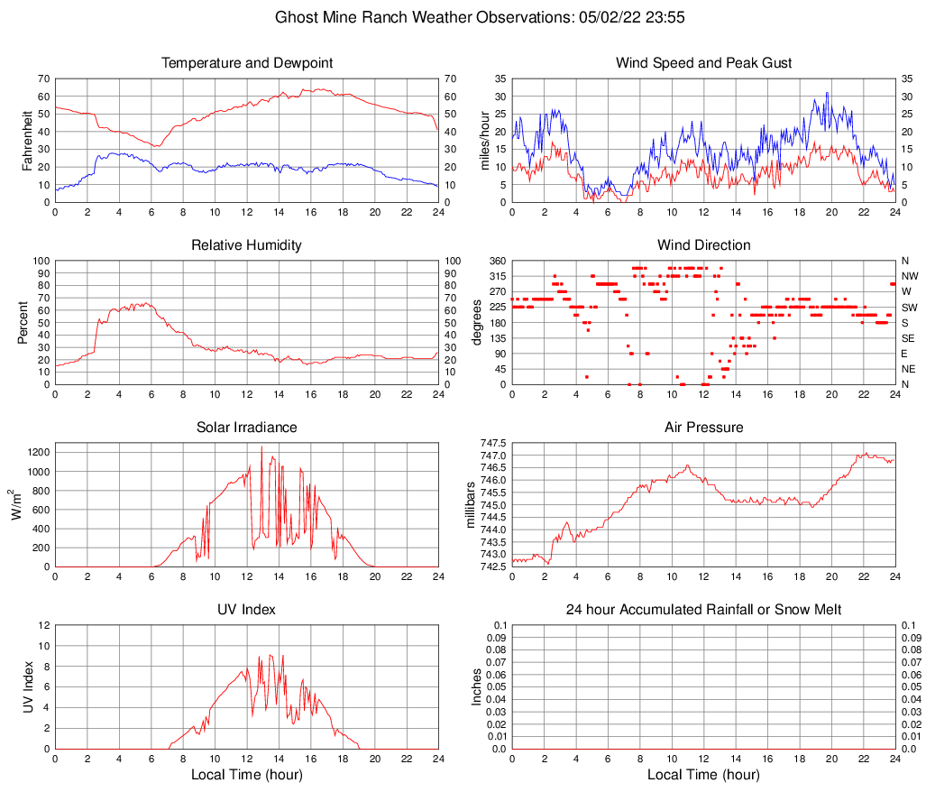 Temperature (F) 41.0 31.6 @ 06:10 64.0 @ 15:30 51.0