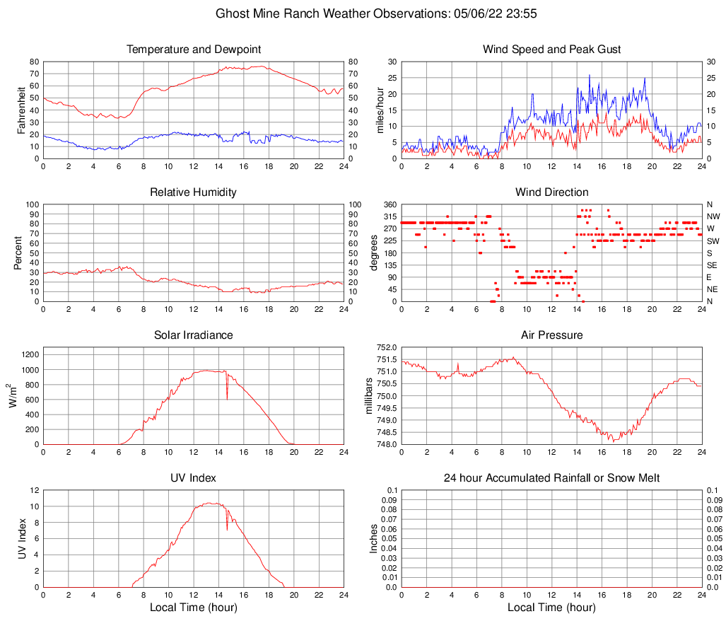 Temperature (F) 57.5 33.4 @ 05:55 76.2 @ 17:25 57.1
