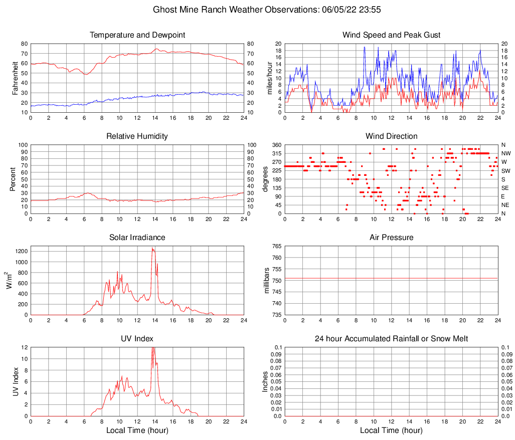 Temperature (F) 58.3 48.5 @ 06:15 74.7 @ 14:10 64.2