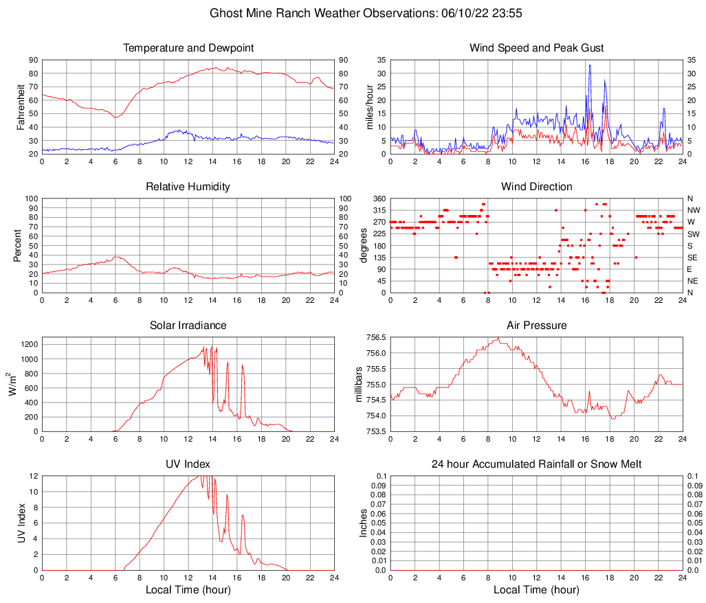 Temperature (F) 68.3 47.2 @ 05:55 84.3 @ 14:15 69.9