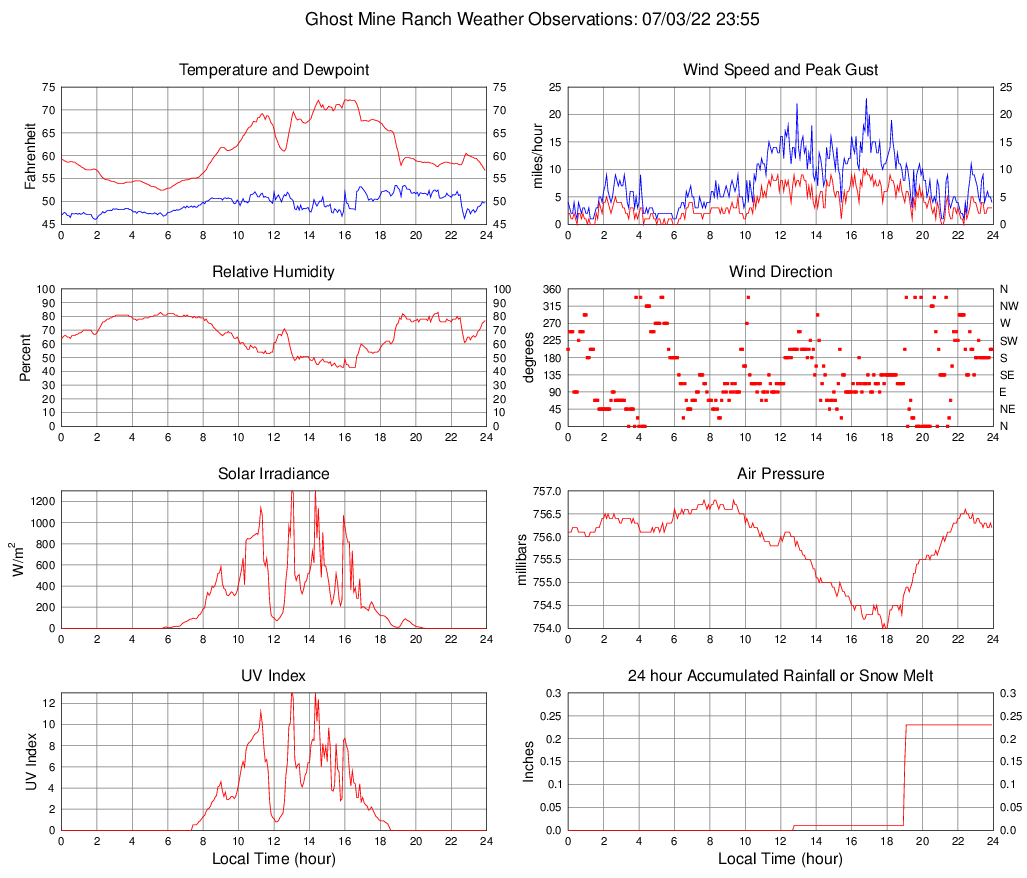 Temperature (F) 56.8 52.5 @ 05:35 72.2 @ 16:00 61.0