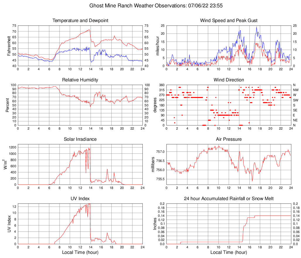 Dewpoint (F) 44.1 43.3 @ 14:10 56.5 @ 13:15 49.0