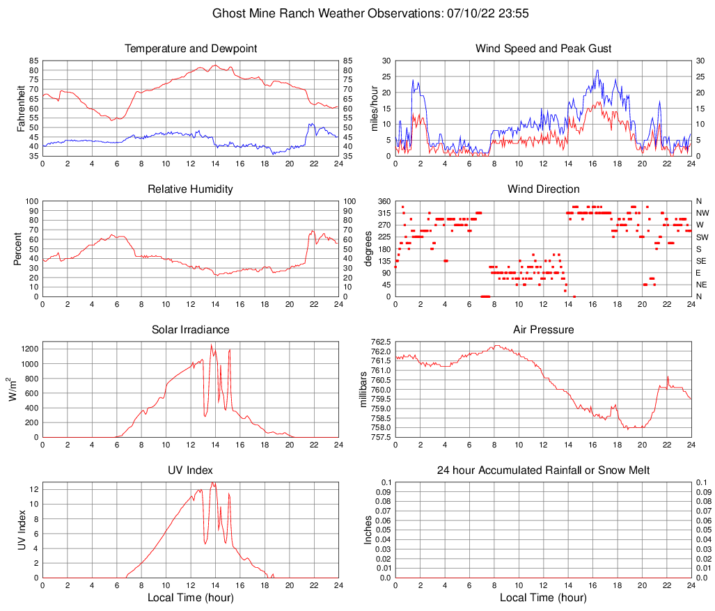 Temperature (F) 60.9 53.6 @ 05:35 82.6 @ 14:00 69.5