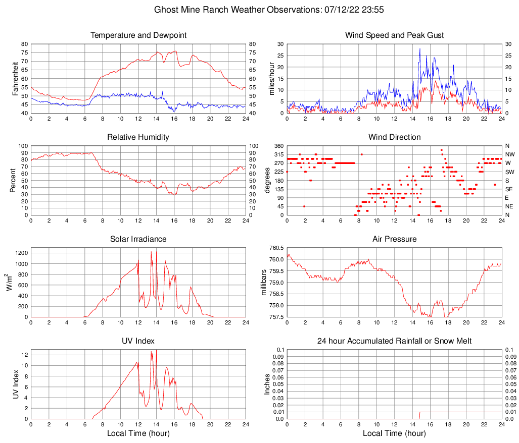 Temperature (F) 54.7 47.5 @ 05:45 75.9 @ 16:10 61.5