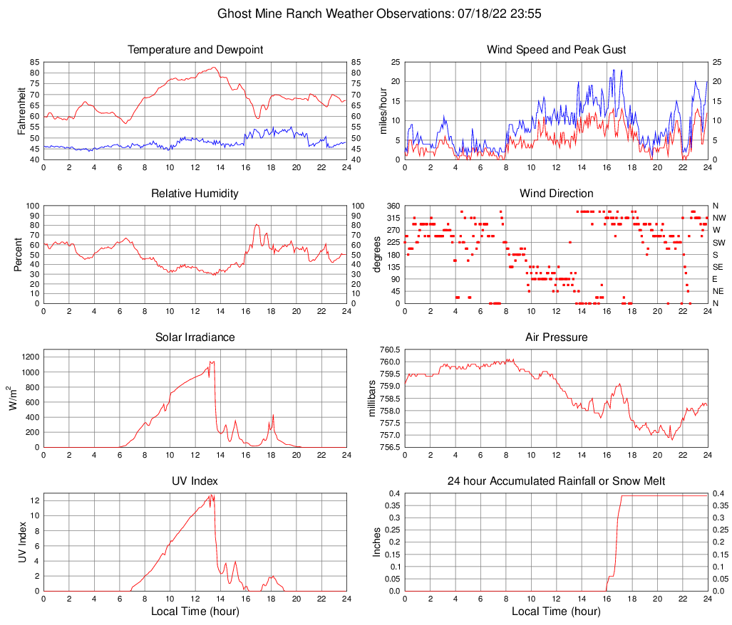 Temperature (F) 67.3 56.6 @ 06:30 82.5 @ 13:25 68.2