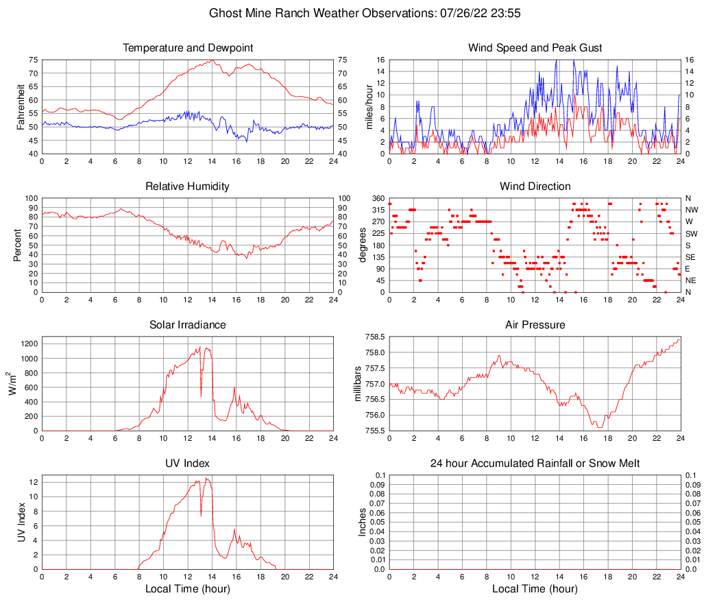 Temperature (F) 58.2 52.7 @ 06:20 74.9 @ 14:00 63.0