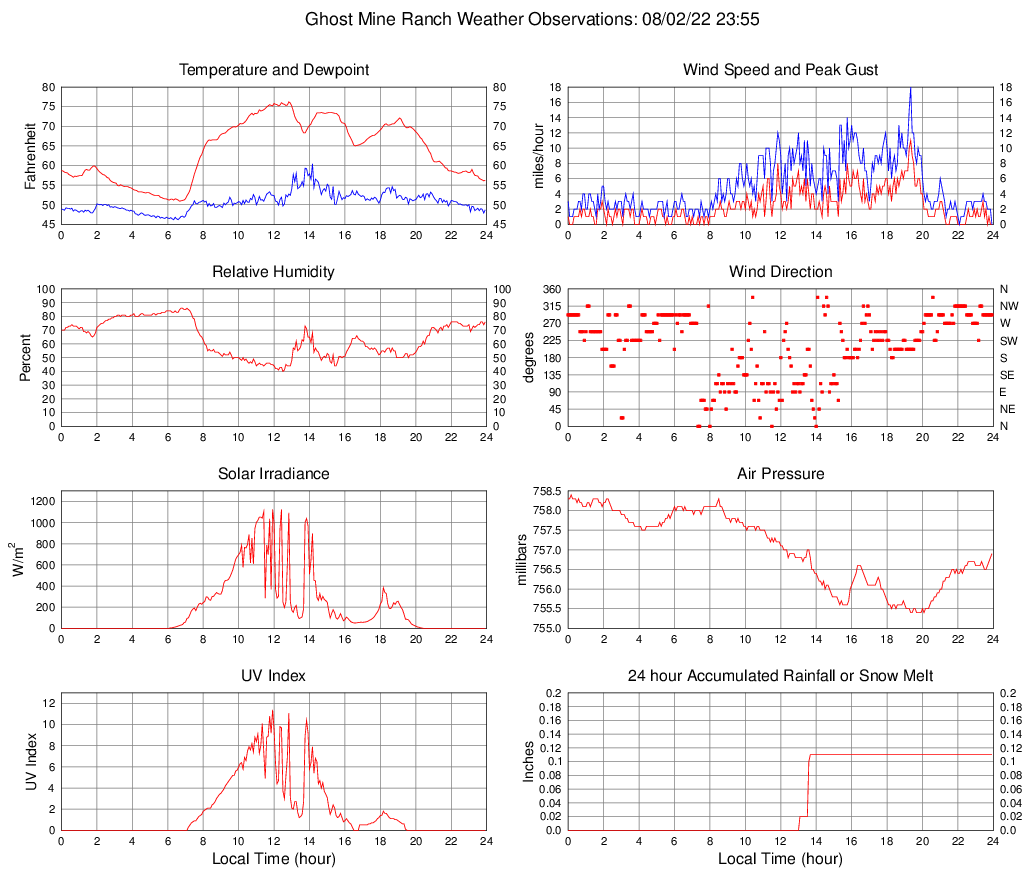 Temperature (F) 56.2 50.9 @ 06:40 76.2 @ 12:50 63.8