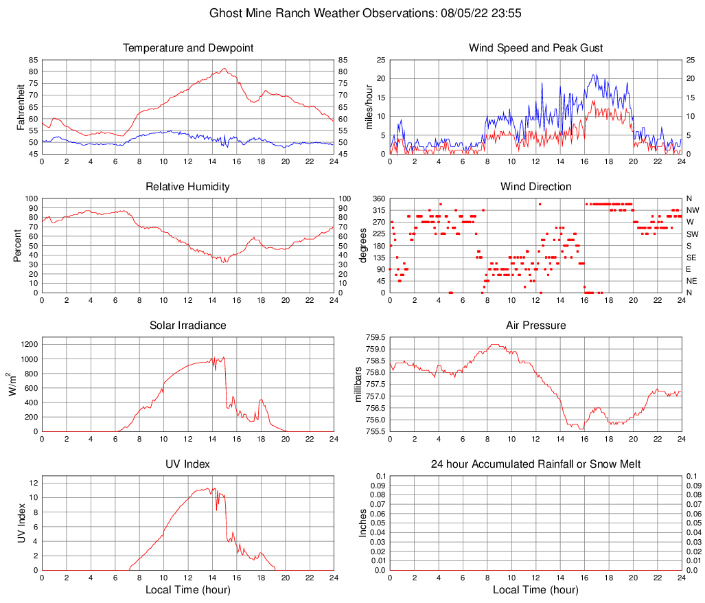 Dewpoint (F) 49.1 47.7 @ 19:50 55.0 @ 10:35 50.8