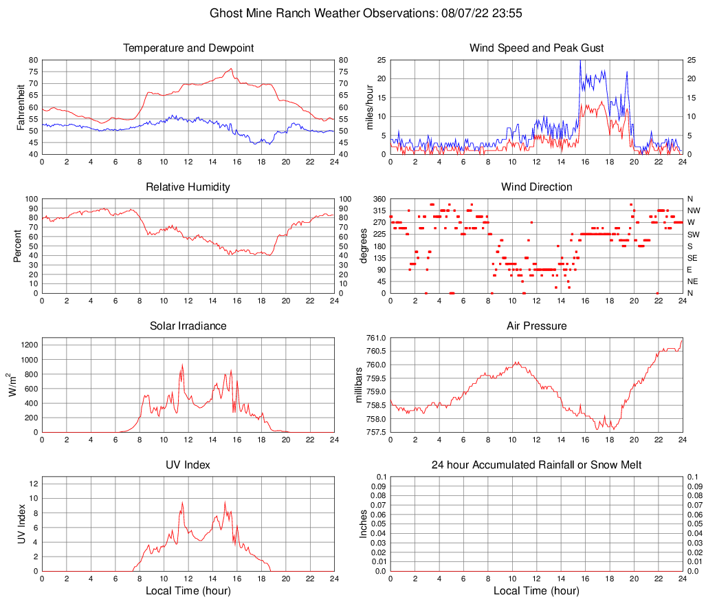 Temperature (F) 54.7 53.2 @ 04:50 76.4 @ 15:30 62.6
