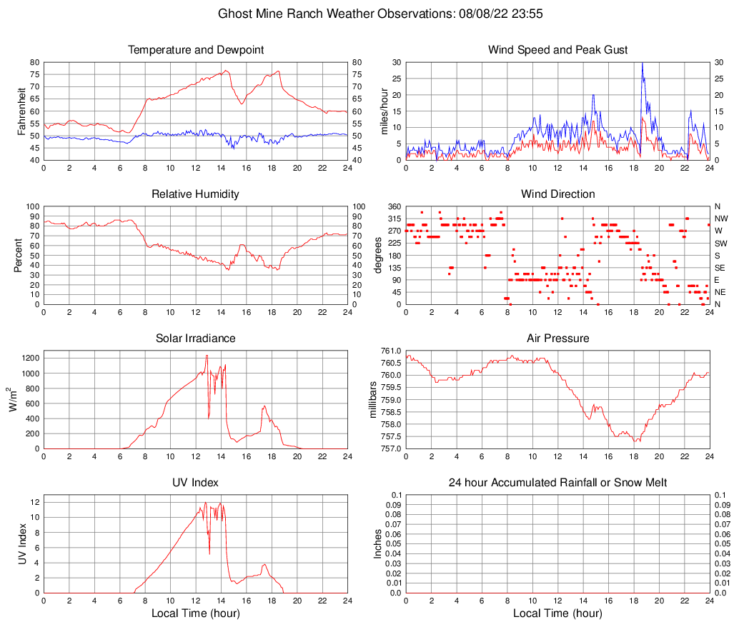 Temperature (F) 59.3 51.2 @ 06:35 76.7 @ 14:20 63.1