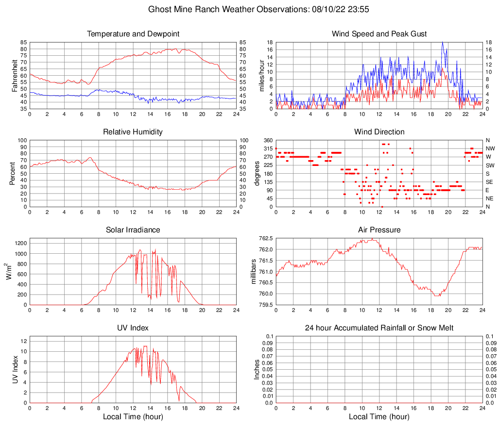Temperature (F) 56.2 53.5 @ 06:45 80.1 @ 16:55 67.2