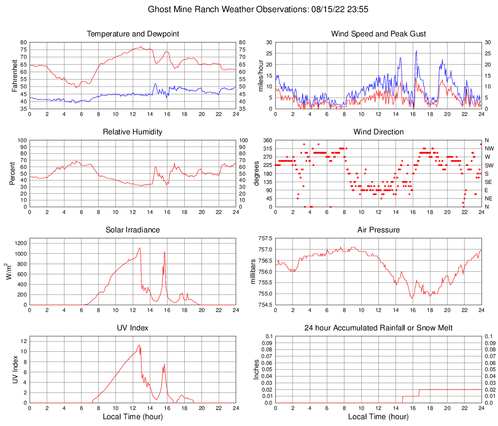 Temperature (F) 61.2 49.2 @ 05:25 77.0 @ 12:55 64.7