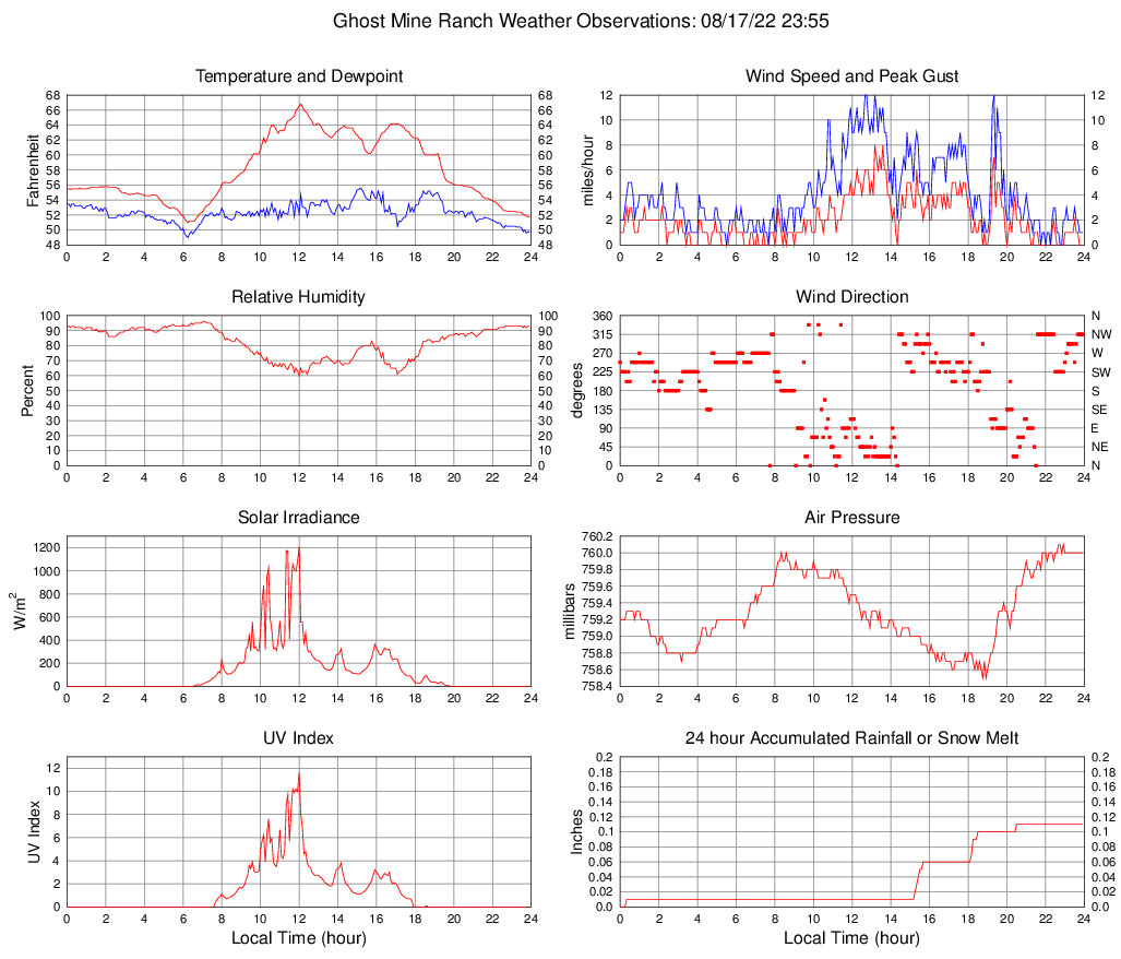 Dewpoint (F) 49.7 49.0 @ 06:15 55.6 @ 15:10 52.4