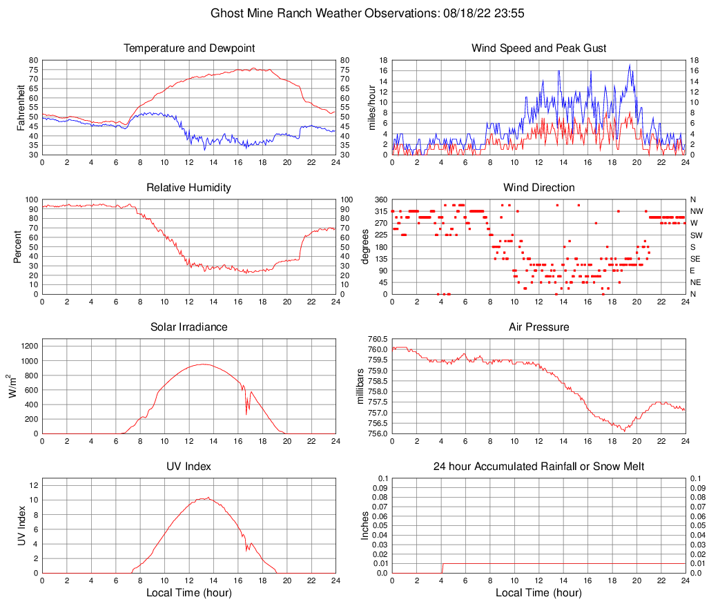 Temperature (F) 52.7 45.9 @ 06:45 75.8 @ 17:15 61.1