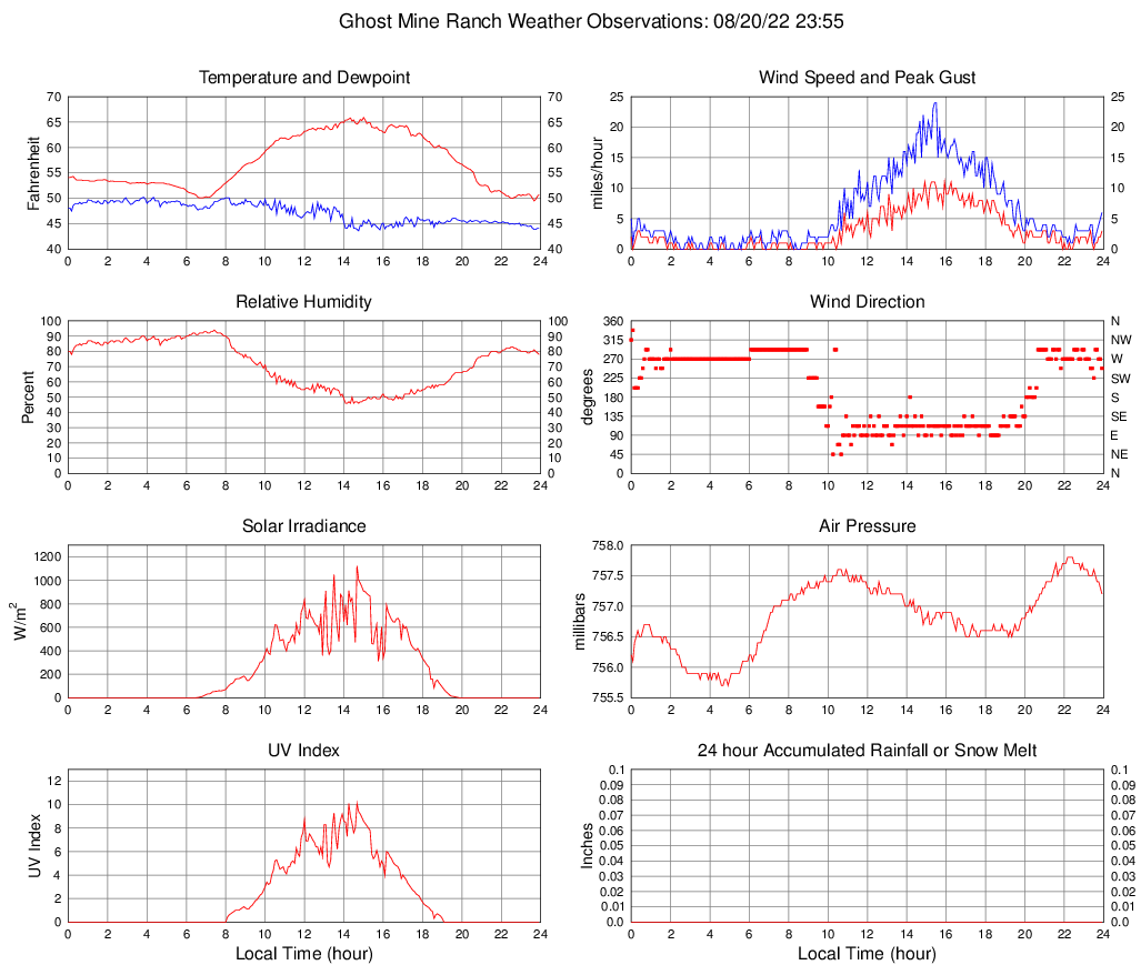 Temperature (F) 50.7 49.5 @ 23:40 65.9 @ 15:00 57.0
