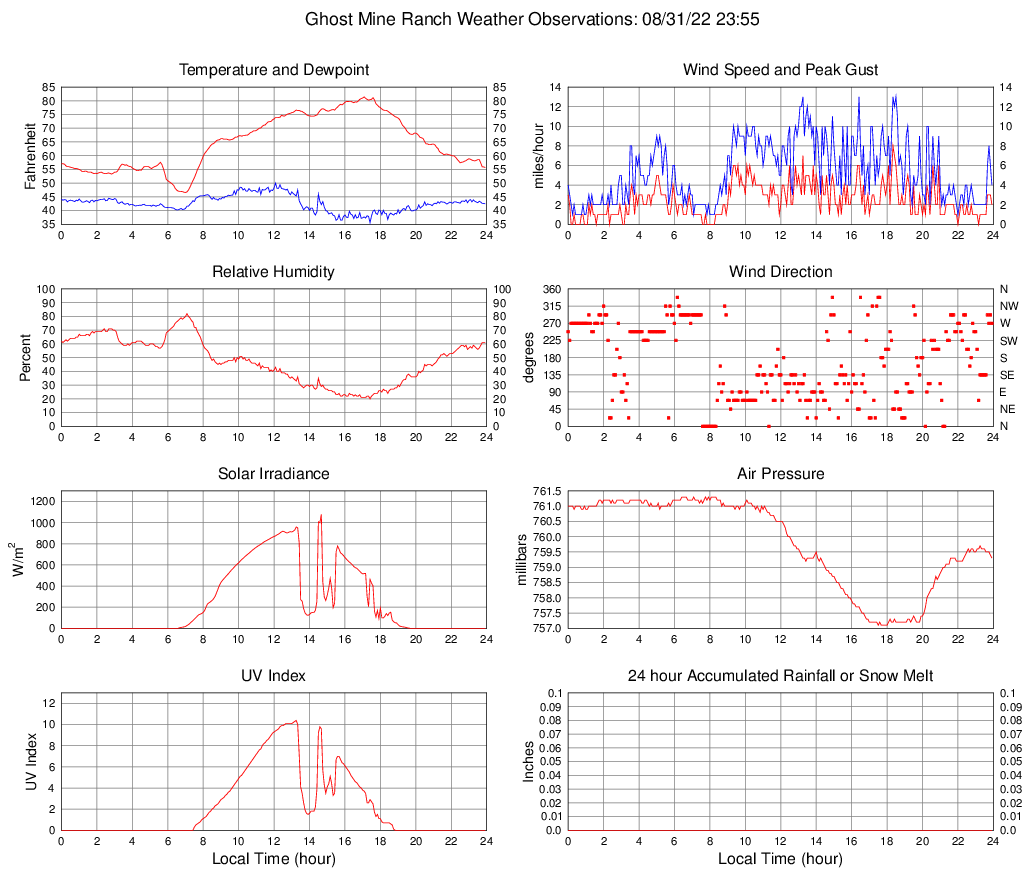 Temperature (F) 55.7 46.6 @ 07:00 81.4 @ 17:05 64.7