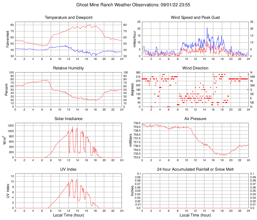 Temperature (F) 54.7 46.5 @ 06:20 80.6 @ 16:45 63.0