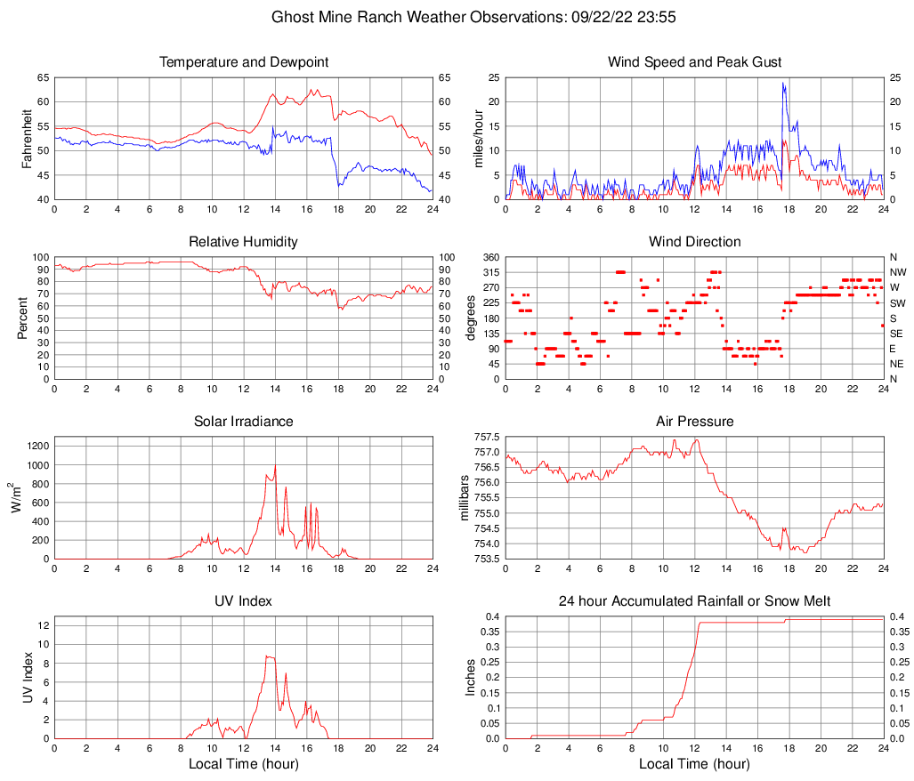Temperature (F) 49.1 49.1 @ 23:55 62.5 @ 16:15 55.4